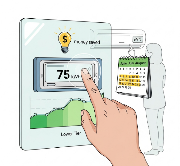 ๋ƒ‰๋ฐฉ๊ธฐ ์‚ฌ์šฉ๋Ÿ‰์ด ๋งŽ์€ ์‹œ๊ธฐ์ธ ๋งŒํผ, ๋ˆ„์ง„ ๊ตฌ๊ฐ„์ด ํ™•์žฅ๋˜์–ด ์š”๊ธˆ ๋ถ€๋‹ด์„ ์ผ๋ถ€ ๊ฒฝ๊ฐํ•ด ์ค๋‹ˆ๋‹ค.