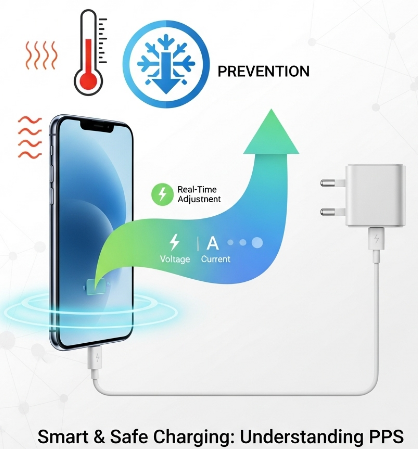 PPS(Programmable Power Supply)๋Š” PD ์ถฉ์ „์˜ ํ•œ ์ข…๋ฅ˜๋กœ, ์ถฉ์ „๊ธฐ์™€ ๊ธฐ๊ธฐ๊ฐ€ ์‹ค์‹œ๊ฐ„์œผ๋กœ ์ „์••๊ณผ ์ „๋ฅ˜๋ฅผ ์กฐ์ ˆํ•˜๋ฉฐ ์ตœ์ ์˜ ์†๋„๋กœ ์ถฉ์ „ํ•˜๋Š” ๊ธฐ์ˆ ์ด์—์š”.