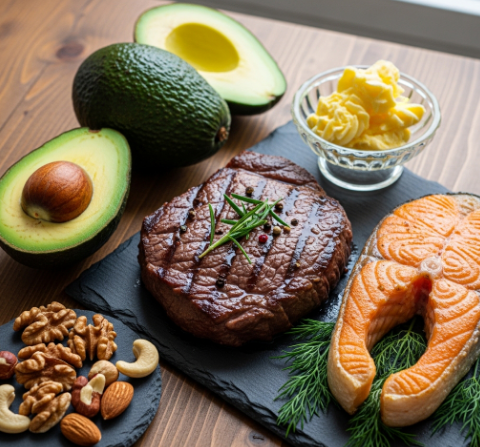- ์ฃผ์ ์ํ: ๊ณ ๊ธฐ, ์์ , ๋ฒํฐ, ์๋ณด์นด๋, ๊ฒฌ๊ณผ๋ฅ ๋ฑ ์ง๋ฐฉ๊ณผ ๋จ๋ฐฑ์ง์ด ํ๋ถํ ์์.