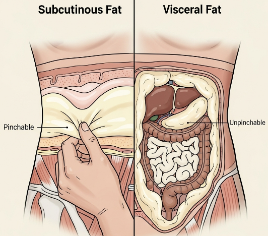 ์šฐ๋ฆฌ ๋ชธ์˜ ์ง€๋ฐฉ์€ ํฌ๊ฒŒ ํ”ผํ•˜์ง€๋ฐฉ๊ณผ ๋‚ด์žฅ์ง€๋ฐฉ์œผ๋กœ ๋‚˜๋ˆŒ ์ˆ˜ ์žˆ์–ด์š”. ํ”ผํ•˜์ง€๋ฐฉ์€ ํ”ผ๋ถ€ ๋ฐ”๋กœ ๋ฐ‘์— ์žˆ์–ด์„œ ์†์œผ๋กœ ์žก์„ ์ˆ˜ ์žˆ์ง€๋งŒ, ๋‚ด์žฅ์ง€๋ฐฉ์€ ์žฅ๊ธฐ ์‚ฌ์ด์— ์Œ“์—ฌ ์žˆ์–ด ๊ฒ‰์œผ๋กœ ์ž˜ ๋ณด์ด์ง€ ์•Š๋Š” ๊ฒฝ์šฐ๊ฐ€ ๋งŽ์•„์š”.