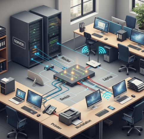 - ์์: ์ง์์ ์ปดํจํฐ์ ์ค๋งํธํฐ์ ์์ดํ์ด๋ก ์ฐ๊ฒฐํ๊ฑฐ๋, ํ์ฌ ์ฌ๋ฌด์ค ๋ด์ ๋ชจ๋ ์ปดํจํฐ๋ฅผ ์ฐ๊ฒฐํ๋ ๊ฒ.