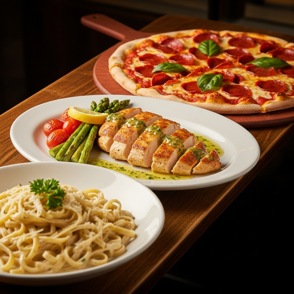 | 4์ | ํผ์ (๋๋ถ๋ถ์ ์ข ๋ฅ) | 250 ~ 350kcal (1์กฐ๊ฐ ๊ธฐ์ค) | ์น์ฆ, ๋์ฐ, ๊ณ ๊ธฐ ํ ํ |