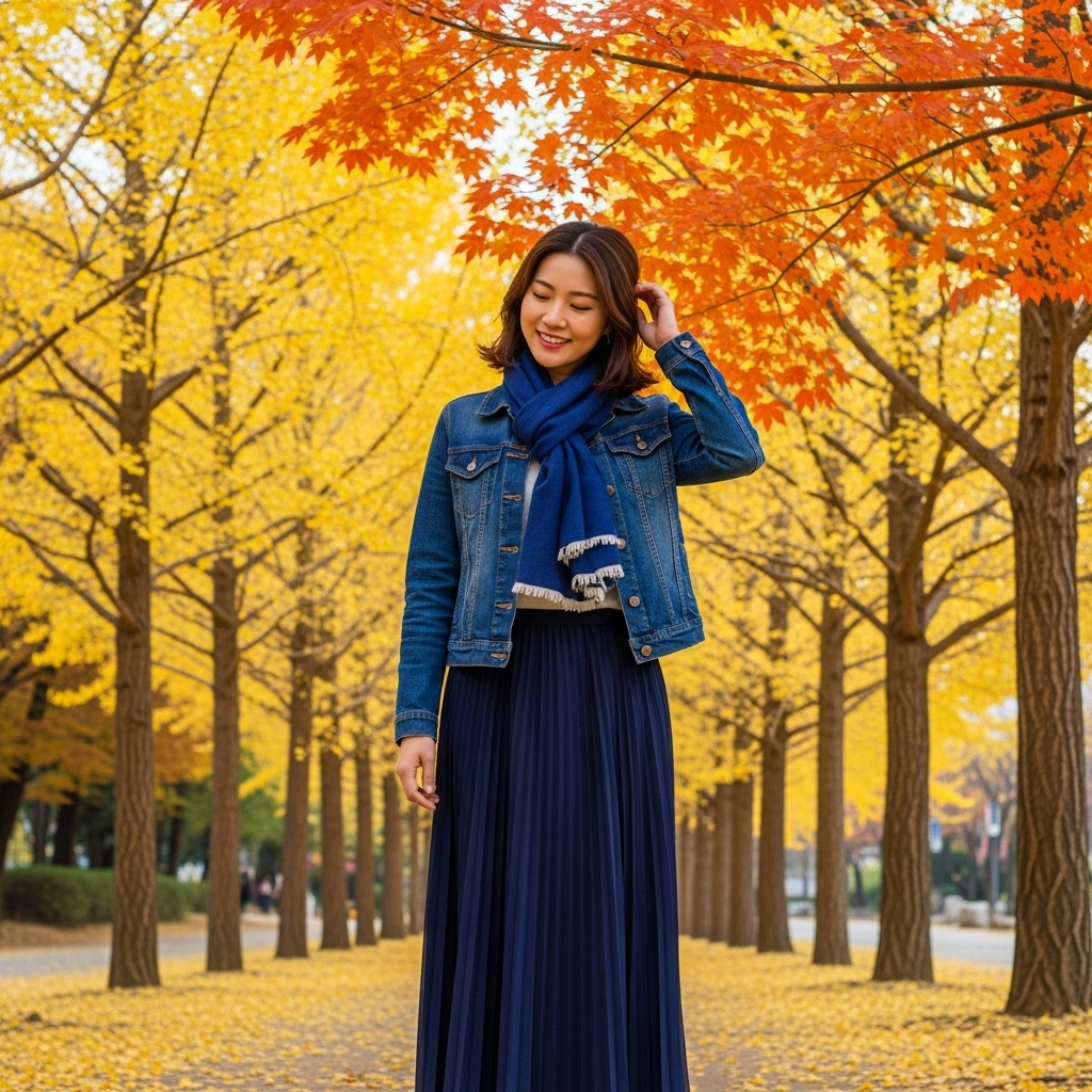 - ์ถ์ฒ ์์ดํ : ์ค์ฒญ ๋๋ ์ง์ฒญ ๋ฐ๋ ์ฌํท/์ ์ธ , ๋ค์ด๋น ์ปฌ๋ฌ ๋กฑ ์ค์ปคํธ, ๋ธ๋ฃจ ๊ณ์ด์ ๋จธํ๋ฌ.