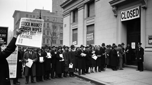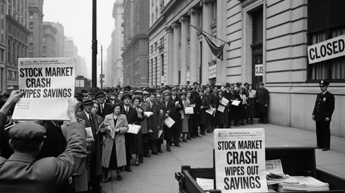 • ์€ํ–‰ ํŒŒ์‚ฐ: ์ฃผ๊ฐ€ ํญ๋ฝ์œผ๋กœ ์€ํ–‰๋“ค์ด ์ค„์ค„์ด ํŒŒ์‚ฐํ–ˆ๊ณ , ์˜ˆ๊ธˆ์ž๋“ค์€ ๋ˆ์„ ์ธ์ถœํ•˜์ง€ ๋ชปํ–ˆ์Šต๋‹ˆ๋‹ค. ์ด๋Š” ๊ธˆ์œต ์‹œ์Šคํ…œ์˜ ์‹ ๋ขฐ๋ฅผ ์™„์ „ํžˆ ๋ฌด๋„ˆ๋œจ๋ ธ์Šต๋‹ˆ๋‹ค.