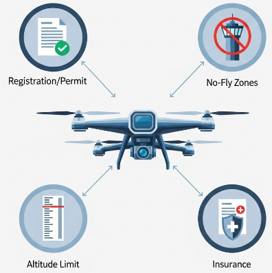 | λ―Έκ΅ | - 250g μ΄μ λλ‘ μ FAAμ λ±λ‘ νμ - 곡ν μΈκ·Ό, κ΅λ¦½κ³΅μ λ± λΉν κΈμ§ - 120m (400νΌνΈ) μ΄ν λΉν |