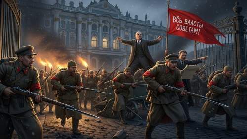 - 무μ₯ λ΄κΈ°: λ λκ³Ό νΈλ‘μΈ ν€μ μ§λ μλ, λ³Όμ °λΉν€ νλͺ κ΅°(μ μλ)μ 1917λ 11μ 7μΌ (λ¬μμλ ₯ 10μ 25μΌ) ννΈλ‘κ·ΈλΌλμμ 무μ₯ λ΄κΈ°λ₯Ό μΌμΌμΌ μμ μ λΆκ° μλ κ²¨μΈ κΆμ μ μ λ Ήνκ³ κΆλ ₯μ μ₯μ νμ΅λλ€.