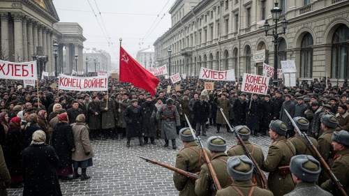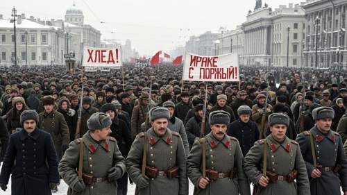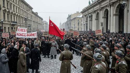 - μ°¨λ₯΄ 체μ λΆκ΄΄: 1917λ 3μ, ννΈλ‘κ·ΈλΌλ(μνΈνν λ₯΄λΆλ₯΄ν¬)μμ μλ λ°°κΈκ³Ό μ μ μ€λ¨μ μꡬνλ μμκ° λ°μνμ΅λλ€. μ΄ μμμ κ΅°λκΉμ§ λμ°Ένλ©΄μ μ°¨λ₯΄ λμ½λΌμ΄ 2μΈκ° ν΄μνκ³ 300μ¬ λ κ°μ λ‘λ§λ Έν μμ‘°κ° λΆκ΄΄λμμ΅λλ€.
