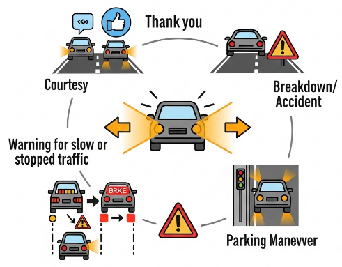 - ์ฃผ์ฐจ/์ ์ฐจ: ์ ์ ์ฐจ๋ฅผ ์ธ์๋๊ฑฐ๋, ์ข์ ๊ณต๊ฐ์ ์ฃผ์ฐจํ ๋ ๋ค๋ฅธ ์ฐจ๋ค์๊ฒ ์ฃผ์๋ฅผ ์ฃผ๋ ์ฉ๋๋ก ์ฌ์ฉํฉ๋๋ค.