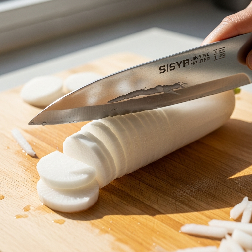 1. ์ฌ๋ฃ ์ค๋น ๋ฐ ์์ง (์ํ๋ฆฌ๋ฌด 3๋จ ๊ธฐ์ค, ์ฝ 4kg)์ํ๋ฆฌ๋ฌด: 3๋จ (๋ฌด์ฒญ์ด ํ๋ฆํ๊ณ ๋ฌด๊ฐ ๋จ๋จํ ๊ฒ)์ชฝํ: 1/2๋จ (150~200g, ๋ฌด์ฒญ๊ณผ ํจ๊ป ๋ฒ๋ฌด๋ ค ํ๋ฏธ๋ฅผ ๋ํจ)์ ์์ฉ: ๊ตต์ ์ฒ์ผ์ผ 2~3์ปต, ๋ฌผ 2L๋ฌด ์์ง ๋ฐ