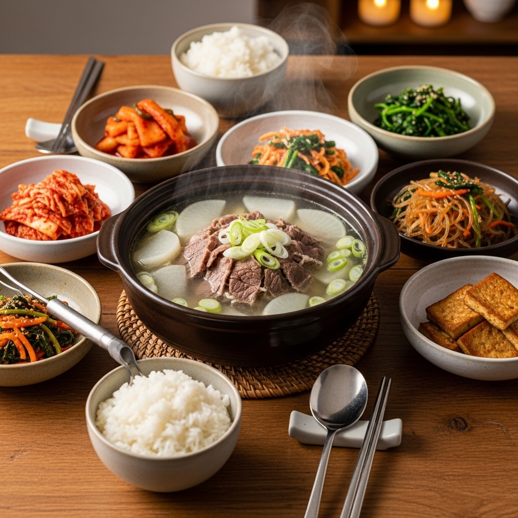 - ๋ฐ์น๊ธฐ (์ ํ): ํ๋ฌผ์ ๋บ ๊ณ ๊ธฐ๋ฅผ ๋๋ ๋ฌผ์ ์์ฃผ ์ด์ง๋ง ๋ฐ์ณ ๊ฒ๋ฉด์ ๋ถ์๋ฌผ(๋จ๋ฐฑ์ง ์ฐ๊บผ๊ธฐ)์ ์ ๊ฑฐํ ํ ์ฐฌ๋ฌผ์ ํน๊ถ ์ฌ์ฉํ๋ฉด ๊ตญ๋ฌผ์ด ๋์ฑ ๋ง๊ณ ๊น๋ํด์ง๋๋ค. (๋๋ฌด ์ค๋ ๋ฐ์น๋ฉด ์ก์ฆ์ด ๋น ์ ธ ๋ง์ด ์์ด์ง๋๋ค.)