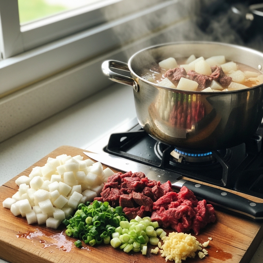 - ์๊ณ ๊ธฐ ๊ตญ๊ฑฐ๋ฆฌ์ฉ(์์ง/์ฌํ): 300g (๋ฉ์ด๋ฆฌ ๊ณ ๊ธฐ๋ฅผ ์ง์ ์ฐ๋ฉด ๋ ๋ง์์)