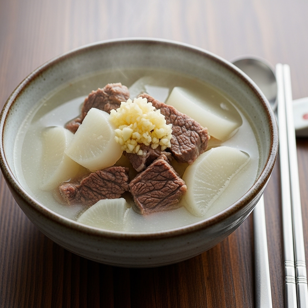 - ๋ฌด: 500g (์ฝ 1/3๊ฐ), ํฐ ๋ถ๋ถ์ด ์์ํ ๋ง์ ๋
