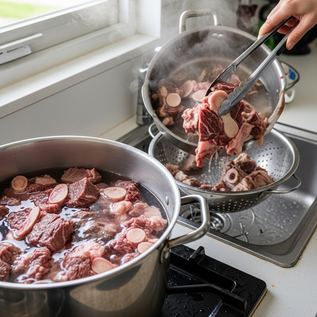 - ์ฐฌ๋ฌผ ๋ด๊ทธ๊ธฐ: ์๊ณ ๊ธฐ๋ฅผ ์ฐฌ๋ฌผ์ 20~30๋ถ ์ด์ ๋ด๊ฐ ํ๋ฌผ์ ๋นผ์ค๋๋ค. (์ค๊ฐ์ ๋ฌผ์ ํ๋ ๋ฒ ๊ฐ์์ฃผ๋ฉด ๋์ฑ ์ข์ต๋๋ค.)