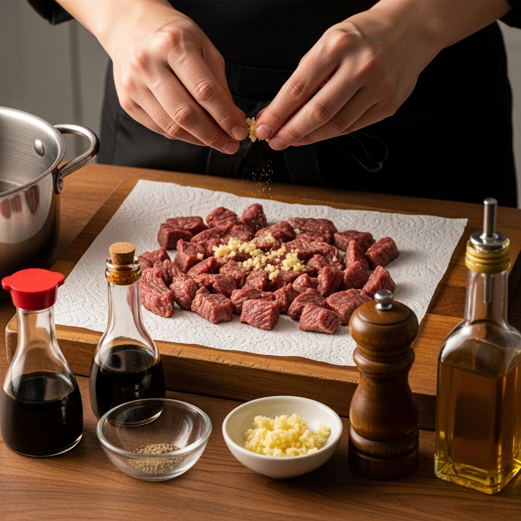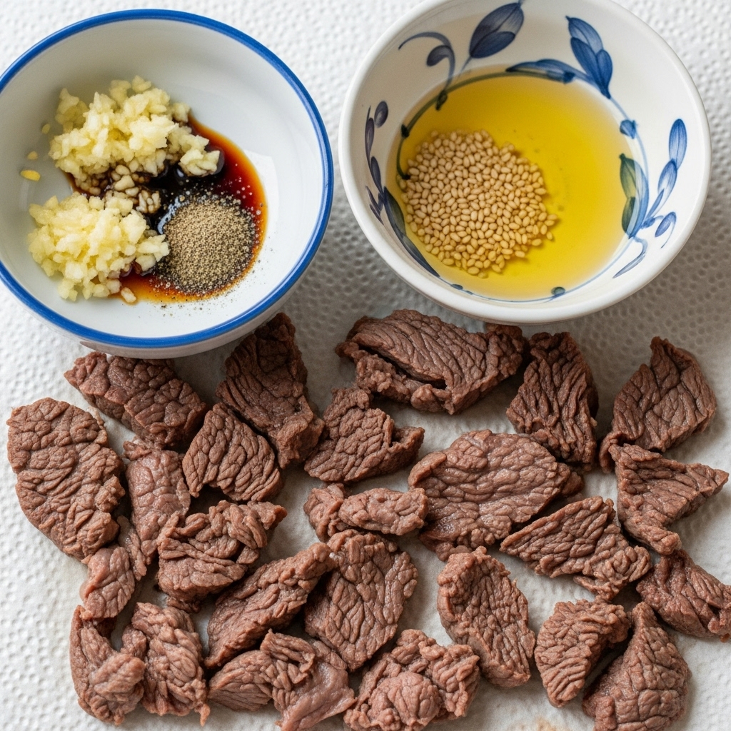- ์๋ : ๊ตญ๊ฐ์ฅ(๋ง์ ๊ฐ์ฅ) 2~3ํฐ์ , ๋ค์ง ๋ง๋ 1ํฐ์ , ์ฐธ๊ธฐ๋ฆ 1ํฐ์ (์ ํ), ์๊ธ(์ฒ์ผ์ผ) ์ฝ๊ฐ, ํ์ถ ์ฝ๊ฐ
