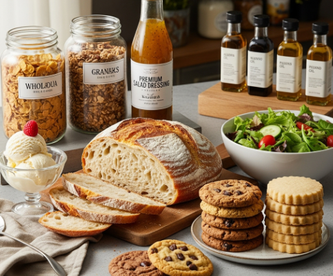 - ν¬ν¨ μμ: λΉ΅, μΏ ν€, μμ΄μ€ν¬λ¦Ό, μλ¬λ λλ μ±, μ리μΌ, 견과λ₯ μ€μΌ
