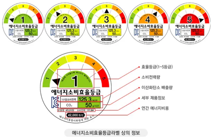 ์๋์ง ์๋น ํจ์จ ๋ฑ๊ธ์ ๊ฐ์ ์ ํ์ ์๋์ง ์๋น๋์ 1~5๋ฑ๊ธ์ผ๋ก ๋๋์ด ํ์ํ ์ ๋์์.