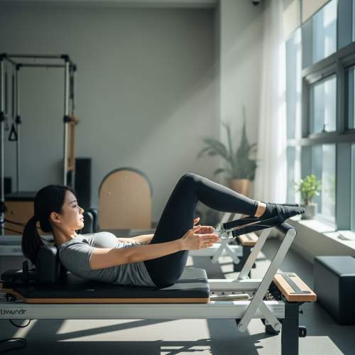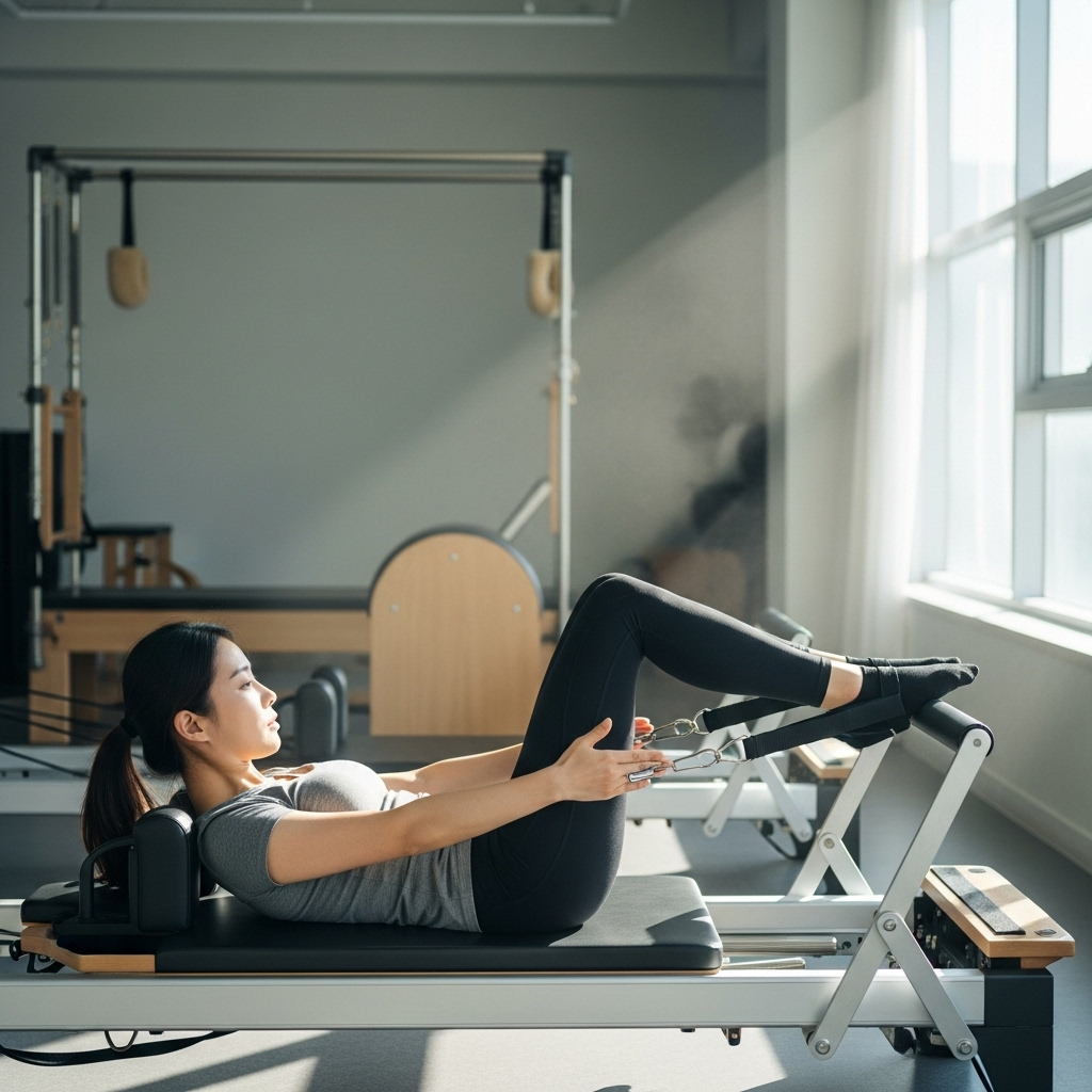 리포머(Reformer) ν•„λΌν…ŒμŠ€ 기ꡬ 쀑 ν•˜λ‚˜ μŠ€ν”„λ§ 저항을 μ΄μš©ν•΄ κ·Όλ ₯ κ°•ν™” 및 슀트레칭
