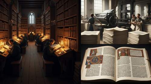 - ๋ณด๊ธ ํ์ฐ: 15์ธ๊ธฐ ๋ง๊น์ง ์ ๋ฝ์์ ์ฝ 2์ฒ๋ง ๊ถ์ ์ฑ ์ด ์ธ์๋ ๊ฒ์ผ๋ก ์ถ์ ๋๋ฉฐ, ์ด๋ ์ง์์ ๋์คํ๋ฅผ ์๋ฏธํ์ต๋๋ค.