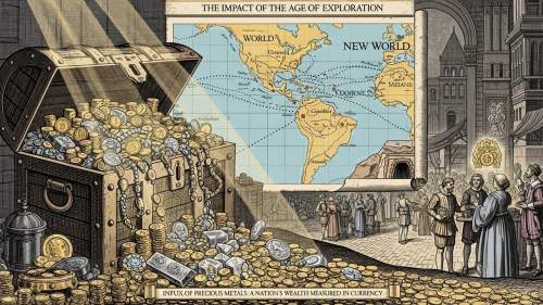 • ๊ท€๊ธˆ์† ์œ ์ž…: ์‹ ๋Œ€๋ฅ™์—์„œ ๋ง‰๋Œ€ํ•œ ์–‘์˜ ๊ธˆ๊ณผ ์€์ด ์œ ๋Ÿฝ์œผ๋กœ ์œ ์ž…๋˜๋ฉด์„œ, ๊ตญ๊ฐ€์˜ ๋ถ€๋ฅผ ํ™”ํ(๊ท€๊ธˆ์†)์˜ ์–‘์œผ๋กœ ์ธก์ •ํ•˜๋Š” ๊ฐœ๋…์ด ํ™•๋ฆฝ๋˜์—ˆ์Šต๋‹ˆ๋‹ค.