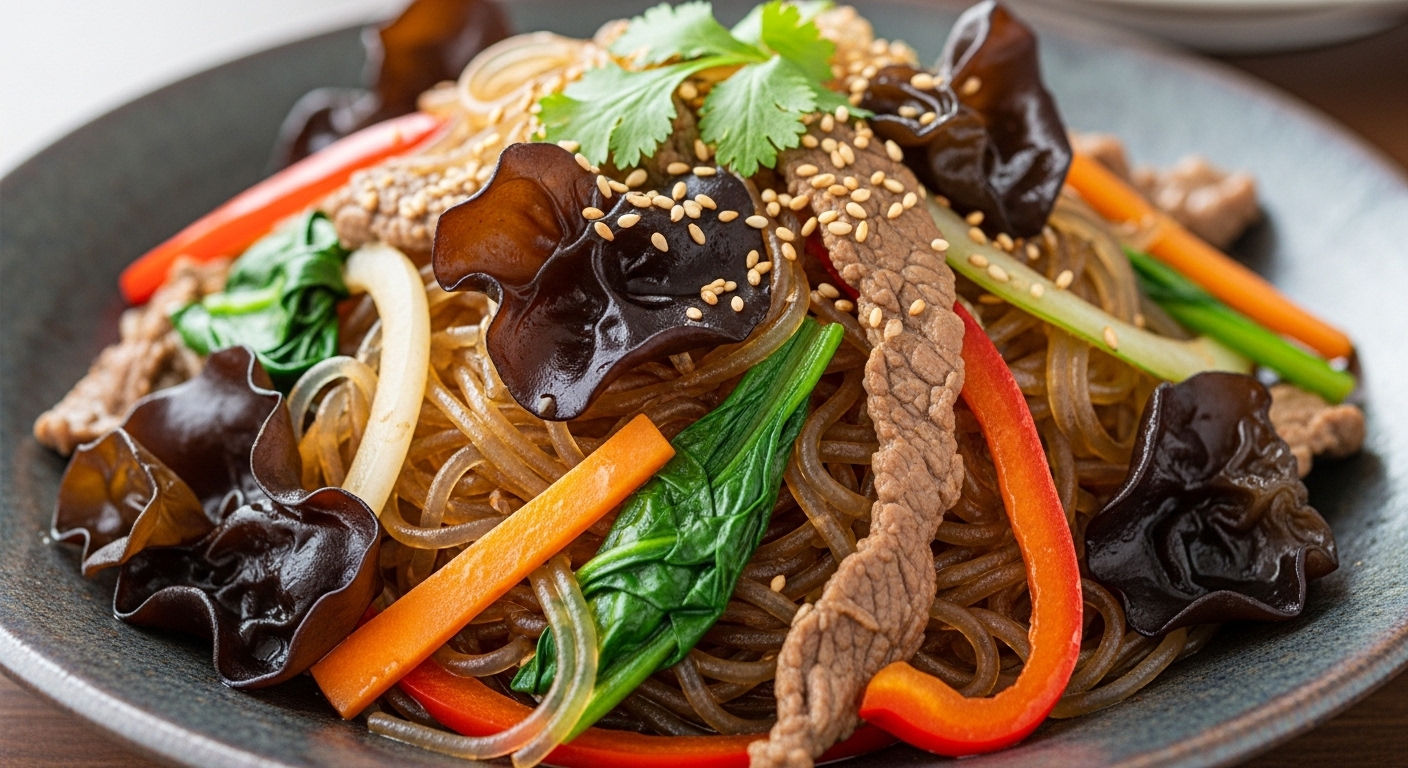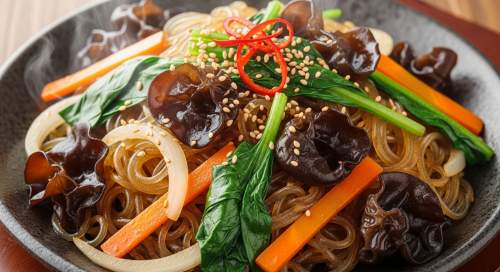 - ์ฃผ์ ์ฌ๋ฃ: ๋น๋ฉด, ๋ถ๋ฆฐ ๊ฒ์ ๋ชฉ์ด๋ฒ์ฏ, ์๊ธ์น, ๋น๊ทผ, ์ํ, ๋ผ์ง๊ณ ๊ธฐ(์ก์ฑ์ฉ), ๊ฐ์ฅ ์๋