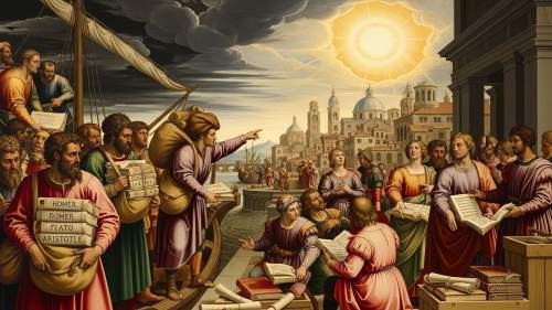 - ๋ฅด๋ค์์ค ์ด์ง: ์ด๋ค์ด ๊ฐ์ ธ์จ ๊ทธ๋ฆฌ์ค ๊ณ ์ ์๋ณธ๋ค์ ์ด๋ฏธ ์ดํ๋ฆฌ์์์ ์งํ ์ค์ด๋ ๋ฅด๋ค์์ค(์ธ๋ฌธ์ฃผ์ ๋ถํฅ)์ ๋ถ์ ์ง๋ฅด๋ ๊ฒฐ์ ์ ์ธ ๊ณ๊ธฐ๊ฐ ๋์์ต๋๋ค.
