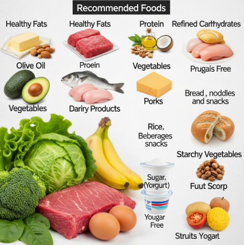 | ๊ฑด๊ฐํ ์ง๋ฐฉ: ๋ฒํฐ, ์๋ณด์นด๋, ์ฌ๋ฆฌ๋ธ์ค์ผ, ์ฝ์ฝ๋์ค์ผ, ๊ฒฌ๊ณผ๋ฅ ๋จ๋ฐฑ์ง: ์๊ณ ๊ธฐ, ๋ผ์ง๊ณ ๊ธฐ, ๋ญ๊ณ ๊ธฐ, ์์ , ๋ฌ๊ฑ ์ฑ์: ๋ธ๋ก์ฝ๋ฆฌ, ์๊ธ์น, ์๋ฐฐ์ถ, ์์ถ ๋ฑ ์์ฑ์ ์ ์ ํ: ์น์ฆ, ์๊ฑฐํธ(๋ฌด์คํ) |