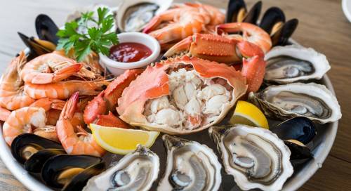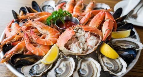 ํ•ด์‚ฐ๋ฌผ ์ƒˆ์šฐ, ๊ฒŒ, ๊ตด, ํ™ํ•ฉ ๋“ฑ ๊ฐ‘๊ฐ๋ฅ˜์™€ ์กฐ๊ฐœ๋ฅ˜ ๋ฐœ์ž‘ ์‹œ ์„ญ์ทจ ๊ธˆ์ง€, ํ‰์†Œ ์†Œ๋Ÿ‰๋งŒ ํ—ˆ์šฉ