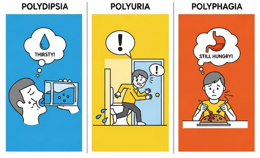 ๋น๋จ๋ณ์ ๊ฐ์ฅ ์ ๋ช ํ ์ด๊ธฐ ์ฆ์ ์ธ ๊ฐ์ง๋ฅผ ํฉ์ณ์ '์ผ๋ค(ไธๅค)'๋ผ๊ณ ๋ถ๋ฅด๋๋ฐ์. ๋ง ๊ทธ๋๋ก '์ธ ๊ฐ์ง๊ฐ ๋ง์์ง๋' ์ฆ์์ด์์. ํ๋น์ด ๋ง์ด ๋์์ก์ ๋ ์ฃผ๋ก ๋ํ๋๋ ์ ํธ๋๋๋ค.
