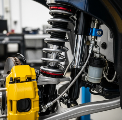 ์ฐจ๋์ ์น์ฐจ๊ฐ๊ณผ ์ฃผํ ์์ ์ฑ์ ์ข์ฐํ๋ ์ค์ํ ๋ถํ์ด ๋ฐ๋ก ์์คํ์ ๊ณผ ๋ํผ์ ๋๋ค.