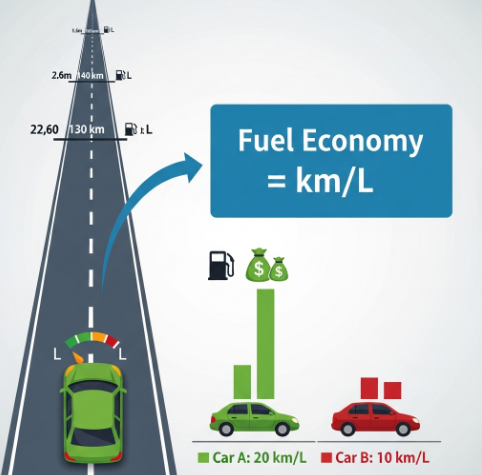 ์ฐ๋น๋ ์๋์ฐจ๊ฐ ์ผ์ ๋์ ์ฐ๋ฃ๋ก ์ผ๋ง๋ ๋จผ ๊ฑฐ๋ฆฌ๋ฅผ ์ฃผํํ ์ ์๋์ง๋ฅผ ๋ํ๋ด๋ ํจ์จ ์งํ์์. ๋ณดํต km/L ๋จ์๋ก ํ์ํฉ๋๋ค.