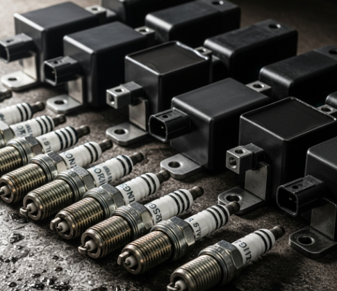 - ์ ํ ์ฝ์ผ (Ignition Coil): ๋ฐฐํฐ๋ฆฌ์ ๋ฎ์ ์ ์์ ์๋ง ๋ณผํธ์ ๊ณ ์ ์์ผ๋ก ๋ณํ์์ผ ์ ํ ํ๋ฌ๊ทธ์ ์ ๋ฌํ๋ ์ญํ ์ ํด์.