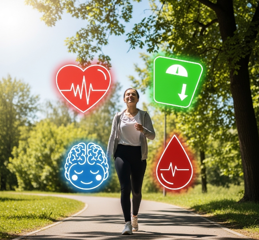• ์‹ฌํ˜ˆ๊ด€ ๊ฑด๊ฐ• ์ฆ์ง„: ๊ฑท๊ธฐ๋Š” ํ˜ˆ์•ก ์ˆœํ™˜์„ ์›ํ™œํ•˜๊ฒŒ ํ•˜๊ณ  ํ˜ˆ์••์„ ๋‚ฎ์ถฐ ์‹ฌ์žฅ๋ณ‘, ๋‡Œ์กธ์ค‘ ๋“ฑ ์‹ฌํ˜ˆ๊ด€ ์งˆํ™˜์˜ ์œ„ํ—˜์„ ์ค„์—ฌ์ค๋‹ˆ๋‹ค.