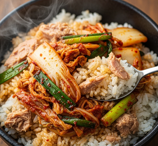 - ์ฌ๋ฃ: ๋ฐฅ 1๊ณต๊ธฐ, ์ฐธ์น 1/2์บ, ์ ์ต์ ๊น์น 1/4ํฌ๊ธฐ, ์ํ 1/4๊ฐ, ๊ณ ์ถง๊ฐ๋ฃจ 1/2ํฐ์ , ์ฐธ๊ธฐ๋ฆ