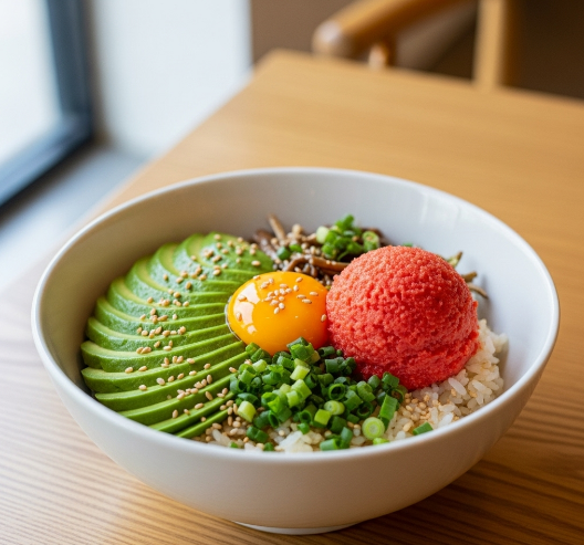 - ์ฌ๋ฃ: ๋ฐฅ 1๊ณต๊ธฐ, ์๋ณด์นด๋ 1/2๊ฐ, ๋ช ๋์ 1๊ฐ, ๊ณ๋ ๋ ธ๋ฅธ์ 1๊ฐ, ์ฐธ๊ธฐ๋ฆ
